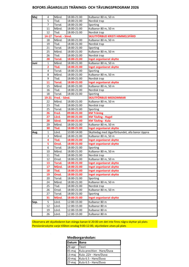 Skjutprogram Årets program i en .ics fil kan av tekniska anledningar bara fås via mail: boforsjg@outlook.com Skjutprogram 2026Ladda ner
